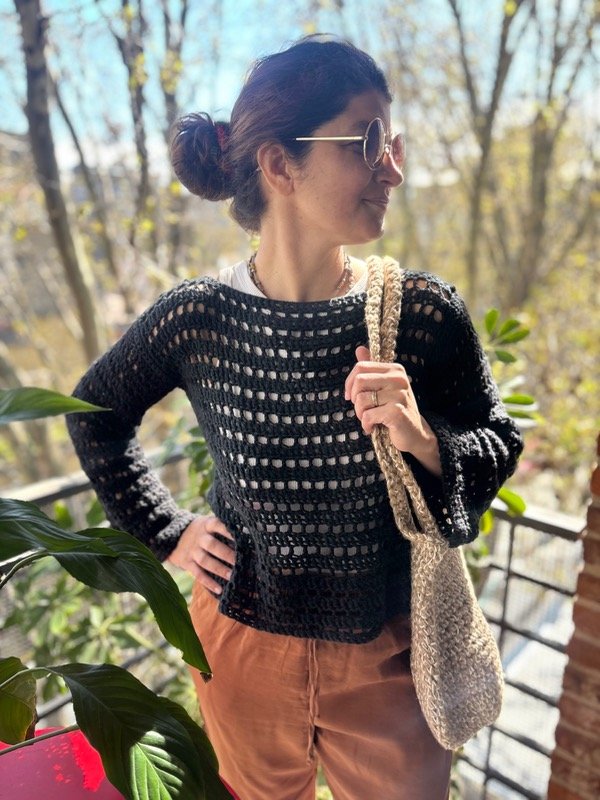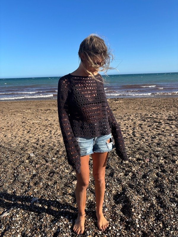 Sweater tejido a mano con hilo de algodón.