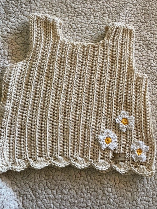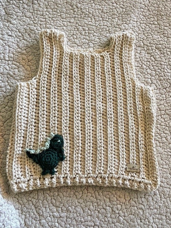 Chaleco tejido de lana o hilo de algodón con apliques.